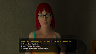 Heather is fortunate that Mark is such a kindhearted madman and that his player intends for Mark to remain such a person for the entire look at the game.